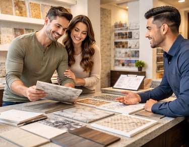 La selección adecuada de materiales es una parte fundamental para el éxito de cualquier instalación. Asistimos a nuestros clientes en la planificación y selección de materiales, considerando estándares de calidad, presupuesto y preferencias de diseño. Nuestro equipo se encarga de la coordinación de los materiales de instalación, incluyendo thinset, grout y otros productos de construcción, así como de la logística de entrega cuando es necesario. La selección del diseño y estilo de los azulejos queda siempre a elección del cliente, garantizando que el resultado final refleje su visión y estilo personal. Este enfoque estructurado asegura eficiencia, calidad y consistencia durante todo el proyecto.