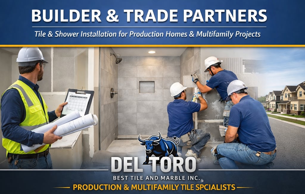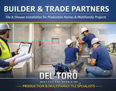 At Del Toro Best Tile and Marble, we serve as a trusted tile installation partner for residential builders and developers across Tampa Bay and Central Florida, including Tampa, Wesley Chapel, Dade City, Riverview, St. Petersburg, Spring Hill, San Antonio (FL), Ocala, and surrounding areas.